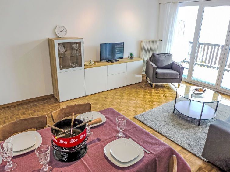 Residencia "Marigny Dent-Blanche". En el barrio de Marigny, en la periferia, a 1.5 km del centro de Montana, lugar tranquilo, soleado, a 150 m de un bosque, a 1.3 km de un lago, orientación sur. En el complejo: ascensor, sala guardaesquís, calefacción central, lavadora (extra), secadora (uso comunitario), secadero. Aparcamiento (número limitado). Tienda 1.5 km, supermercado 1.6 km, restaurante 1.5 km, panadería 900 m, parada autobús "Marigny" 50 m, estación de tren "Funiculaire Montana Gare" 1.1 km, lago "Moubra" 1.3 km. Campo de golf (18 hoyos) 3 km, tenis 1.4 km, pista de tenis cubierta 1.4 km, remontes 1.3 km, pista de hielo 2 km. Lagos conocidos fácilmente accesibles: Lac Grenon 2.5 km, Etang Long 3 km. A tener en cuenta: skibus gratuito. "Marigny Dent-Blanche 25", apartamento de 2 estancias 61 m2 en el 3° piso, orientación sur. Parcialmente reformado en 2024, con mobiliario confortable: salón-comedor con 1 sofá-cama (140 cm, 190 cm de longitud), TV cable. Salida al balcón, orientación sur. 1 dorm. con 2 camas (90 cm, 190 cm de longitud). Cocina (horno, lavavajillas, 4 placas de vitrocerámica, tostadora, hervidor de agua eléctrico, cafetera eléctrica, Cápsulas de café (Nespresso) extra, horno Raclette, set de Fondue (chinoise, queso)). Salida al balcón, orientación norte. WC separado, baño o ducha. Muebles de balcón, tumbonas (2). Vista muy bonita a las montañas y al valle. El alojamiento dispone de: secador de pelo. Internet (Wifi, gratis). A tener en cuenta: apartamento para no fumadores.