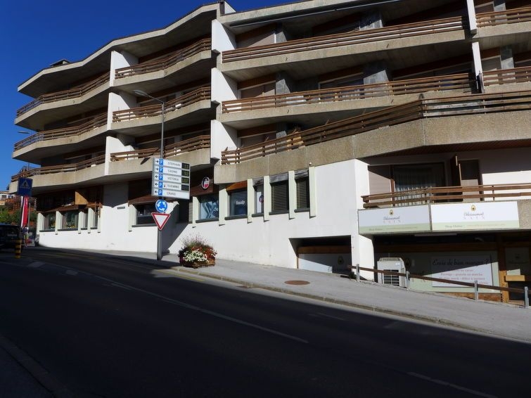 Casa con varias viviendas "Rond-Point", de 3 plantas del año 1976. En el centro de Montana, lugar céntrico, animado, a 600 m de un lago, a 400 m de la zona de esquì, en una calle principal, orientación sur. En el inmueble: ascensor, sala guardaesquís, calefacción central, lavadora, secadora (uso comunitario, extra), secadero. Garaje comunitario, parking público a 50 m, extra. Aparcamiento/garaje para vehículos pequeños/medios. Dimensiones: altura 175 cm ancho 200 cm. Tienda, supermercado 20 m, restaurante, bar 10 m, panadería 20 m, café 10 m, parada autobús "Ycoor" 250 m, estación de tren "Funiculaire Montana Gare" 500 m, lago "Moubra" 1.4 km, lago Grenon 600 m. Campo de golf (18 hoyos) 1.9 km, remontes 400 m, pista de esquí de fondo 1.4 km, pista de hielo 300 m, parque infantil 400 m. Atracciones en los alrededores: Casino 250 m. A tener en cuenta: skibus gratuito.