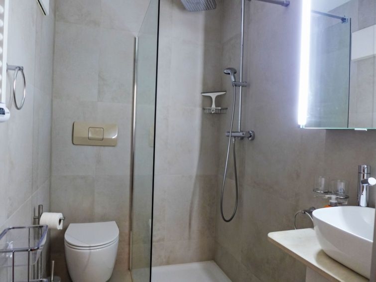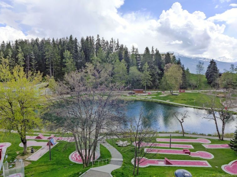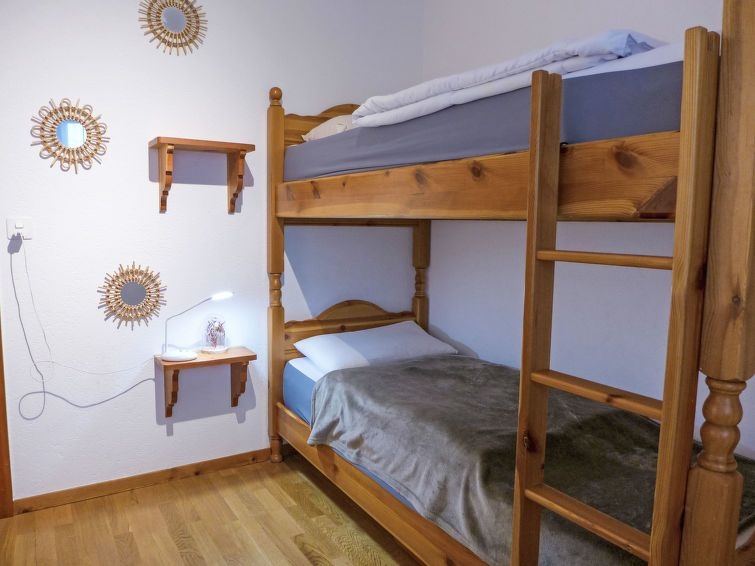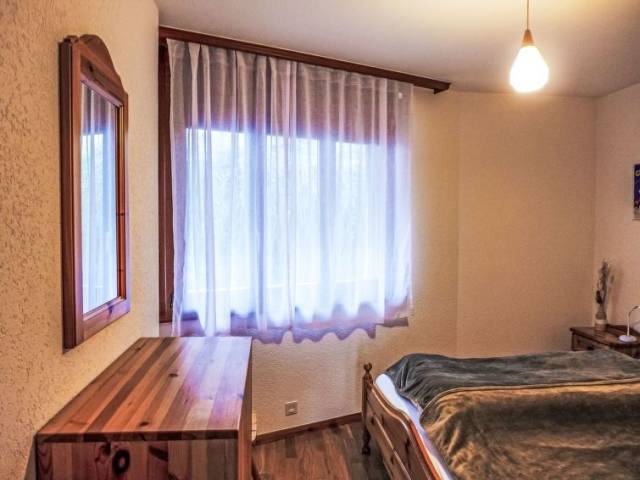 "Corfou A 5", apartamento de 3 estancias 90 m2 en el 3° piso. Con mobiliario confortable y bonito: salón-comedor con chimenea y TV cable (pantalla plana). Salida al balcón. 1 dorm., orientación norte con 1 cama de matrimonio (160 cm, 200 cm de longitud). 1 dorm., orientación norte con 1 cama (80 cm, 190 cm de longitud), 1 x 2 literas (80 cm, 190 cm de longitud). Grande cocina abierta (horno, lavavajillas, 4 placas de vitrocerámica, cafetera eléctrica, Cápsulas de café (Nespresso) extra). Baño/WC, ducha/WC. Suelo de parquet. Balcón 8 m2, orientación sur. Muebles de balcón. Vista bonita al lago y a las montañas. El alojamiento dispone de: secador de pelo. Internet (Wifi). Garaje n. 14/apt 5.