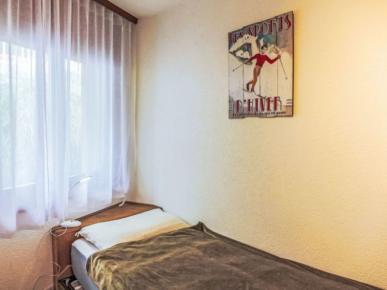 Residencia "Corfou A", agradable de 3 plantas. En el centro de Montana, lugar céntrico, animado, soleado. En el complejo: ascensor, calefacción central, lavadora (uso comunitario, extra), secadero. Parada autobús "Ycoor" 100 m. Campo de golf (18 hoyos) 2 km, minigolf 30 m, remontes 300 m.