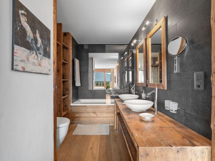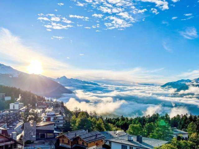 Casa con varias viviendas "Victoria A/B/C". En el centro de Montana, lugar céntrico, soleado, a 450 m de un lago, a 400 m de la zona de esquì. En el inmueble: ascensor, sala guardaesquís, calefacción central, lavadora, secadora (uso comunitario, extra). Parking público, extra. Tienda 10 m, supermercado 100 m, restaurante 15 m, panadería 100 m, parada autobús "Ycoor" 140 m, estación de tren "Funiculaire Montana Gare" 550 m, lago "Moubra" 1.4 km, lago Grenon 450 m. Campo de golf (18 hoyos) 1.7 km, tenis 1.4 km, centro ecuestre 1.2 km, remontes 400 m, pista de hielo 200 m. Atracciones en los alrededores: Casino 150 m. Lagos conocidos fácilmente accesibles: Etang Long 1.7 km. A tener en cuenta: skibus gratuito. Se pueden reservar alojamientos adicionales. "Victoria A 20", apartamento de 4 estancias 100 m2 en el 4° piso. Espacioso, completamente reformado en 2015, con mobiliario muy moderno y lujoso: salón-comedor con chiminea nórdica, DVD, home cinema y persianas eléctricas. Salida a la terraza. 1 dorm., grande con 1 cama de matrimonio (180 cm, 200 cm de longitud), baño/WC, doble lavabo y TV cable. Salida a la terraza. 1 dorm. con puerta corredera con 1 cama de matrimonio (160 cm, 200 cm de longitud). 1 dorm. con puerta corredera con 1 cama abatible de matrimonio (140 cm, 200 cm de longitud). Salida al balcón. Cocina abierta (horno, lavavajillas, 4 Placas de inducción, tostadora, hervidor de agua eléctrico, cafetera eléctrica, Cápsulas de café (Nespresso) extra, horno Raclette, microondas/grill, set de Fondue (queso)). Ducha/WC. Balcón, orientación norte terraza 18 m2, orientación sur. Muebles de terraza, muebles de balcón, barbacoa (portátil), rincón para sentarse. Vista panorámica espléndida a las montañas, al valle, al paisaje y a la localidad. El alojamiento dispone de: plancha, cuna hasta 2 años, secador de pelo. Internet (Wifi, gratis). Lector de Blu-ray. A tener en cuenta: adecuado para familias. Apartamento para no fumadores.