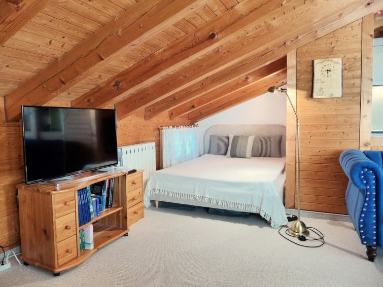 Chalet tipo suizo confortable de 3 plantas, individual. 2 apartamentos en la propiedad. En el barrio de Terrassenweg, a 2.5 km del centro, lugar tranquilo, soleado en una pendiente, a 150 m de la zona de esquì, orientación sur. En el inmueble: sala guardaesquís, calefacción central, lavadora, secadora (uso comunitario). Trastero a disposición. Acceso hasta 50 m de la casa. En invierno las cadenas de nieve son necesarias. 50 m acceso por escaleras hasta la casa. Aparcamiento a 50 m. Centro comercial 2.5 km, restaurante 150 m, panadería 2.5 km, alquiler de bicicletas 2.5 km, a 10 minutos del centro andando, parada autobús "Kreuzweg + Bodmi" 150 m, estación de tren "Grindelwald Dorf" 2.9 km, piscina 4 km, piscina cubierta 2.8 km. Campo de golf (9 hoyos) 3.5 km, tenis 3 km, minigolf 2.5 km, polideportivo 2.8 km, telesquí 150 m, telecabina 2.6 km, pistas de esquí, alquiler de esquís, parada de ski-bus, escuela de esquí, escuela de esquí para niños 150 m, pista de esquí de fondo 3 km, pista de hielo 2.8 km, parque infantil 2.8 km. Zonas de esquí populares fácilmente accesibles: First 150 m, Kleine Scheidegg/Männlichen 4 km. Lagos conocidos fácilmente accesibles: Thuner-/Brienzersee 20 km. Zona de senderismo Jungfrau Region. A tener en cuenta: sin ascensor. Skibus gratuito. Servicio de esquí bus hasta área de esquí Kl. Scheidegg/Männlichen y First. La entrega de llaves se realiza por la agencia Interhome en Grindelwald. "Chalet Bienli Oben", apartamento de 3 estancias en el ático, orientación sur. Vivienda adecuada para 4 adultos + 2 niños. Parcialmente abuhardillado, parcialmente reformado en 2024, con mobiliario agradable y con mucha madera: salón-dormitorio abuhardillado, abierto con 1 cama doble (160 cm, 200 cm de longitud), chimenea (sólo con función decorativa), mesa de comedor y TV cable. Salida al balcón, orientación sur. 1 dorm., abuhardillado con 1 cama doble (2 x 80 cm, 200 cm de longitud). Salida al balcón. 1 dorm. para niños, abuhardillado pequeño con 2 camas (90 cm, 200 cm de longitud). Cocina abierta (horno, lavavajillas, 4 placas de vitrocerámica, tostadora, hervidor de agua eléctrico, microondas, cafetera eléctrica, horno Raclette, set de Fondue (chinoise, queso)). Baño/WC. Moqueta. Balcón grande, orientación sur. Muebles de balcón. Vista panorámica espléndida a las montañas. El alojamiento dispone de: secador de pelo. Internet (Wifi, gratis). Plaza de aparcamiento a 50 m. A tener en cuenta: apartamento para no fumadores. Extintores.