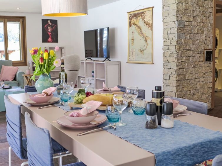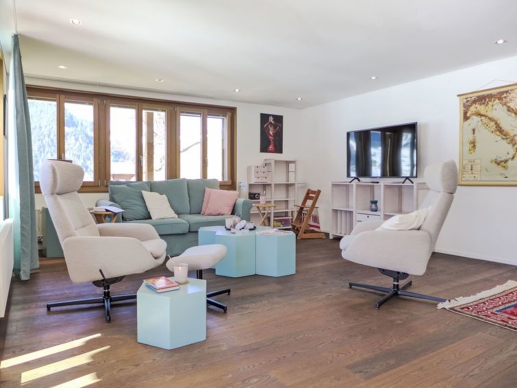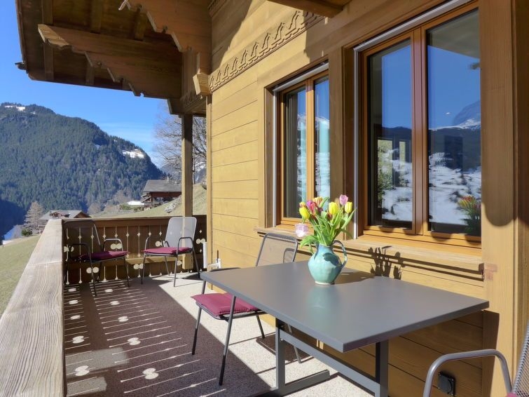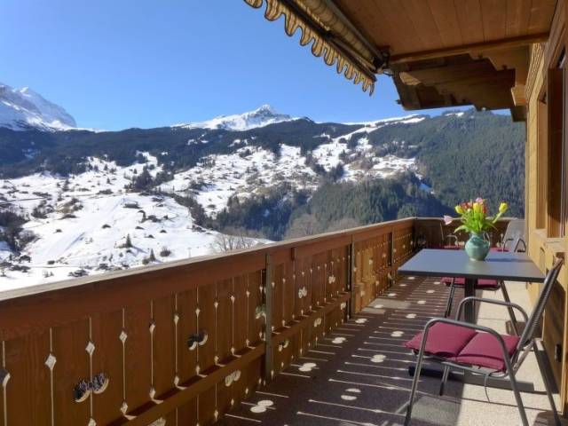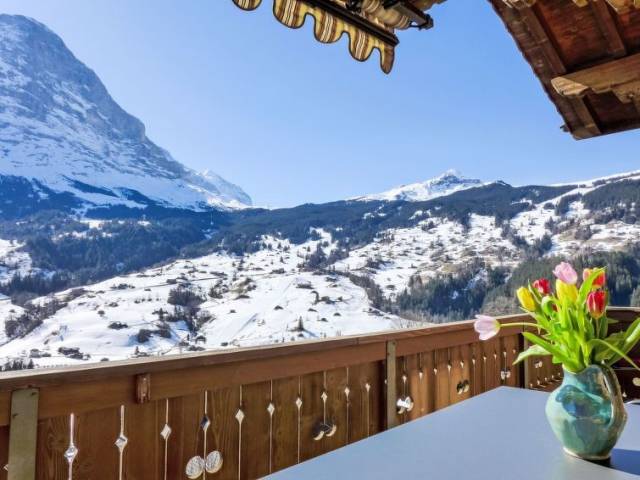 Casa con varias viviendas "Chalet Adlerhorst", moderna, muy confortable de 3 plantas. En el barrio de Herrschaft, a 1.6 km del centro, lugar tranquilo, soleado en una pendiente. En el inmueble: sala guardaesquís, calefacción central, lavadora, secadora (uso comunitario). Acceso hasta la casa. En invierno las cadenas de nieve son necesarias. Aparcamiento junto a la casa. Tienda 1.6 km, tienda de comestibles 500 m, parada autobús "Stein" 270 m, estación de tren "Grindelwald Dorf" 1.4 km, piscina 2.8 km, piscina cubierta 1.6 km. Campo de golf (9 hoyos) 4 km, teleférico 3 km, remontes 3 km, escuela de esquí para niños 2.2 km. Lagos conocidos fácilmente accesibles: Thuner-/Brienzersee. A tener en cuenta: coche recomendable. "Chalet Adlerhorst OG", apartamento de 3 estancias 122 m2 en el 1° piso, orientación sur. Espacioso y luminoso, con mobiliario muy confortable y de buen gusto: salón-comedor abierto grande con ventanal con mesa de comedor y TV cable (pantalla plana). Salida al balcón. 2 dorm. dobles, cada habitación con 1 cama doble (160 cm, 200 cm de longitud), ducha/WC. Salida al balcón. Grande cocina abierta (horno, lavavajillas, 4 Placas de inducción, tostadora, hervidor de agua eléctrico, microondas, cafetera eléctrica, Cápsulas de café (Dolce Gusto) extra, set de Fondue (queso)). Suelo de parquet. Balcón grande, orientación sur. Muebles de balcón. Vista panorámica espléndida a las montañas y a la localidad. El alojamiento dispone de: lavadora, secadora, plancha, trona, cuna hasta 2 años (extra), secador de pelo. Internet (Wifi, gratis). Plaza de aparcamiento (1 coche) junto a la casa. A tener en cuenta: apartamento para no fumadores. Detector de humo, extintores.