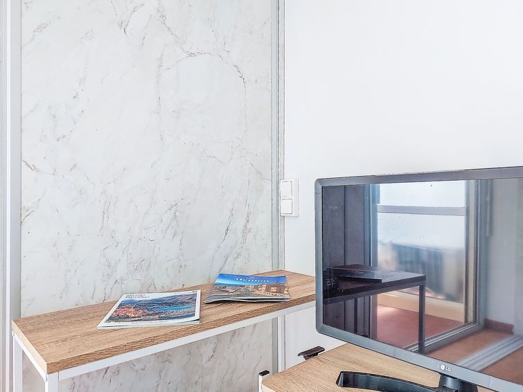 Estudio 21 m2 en el 4° piso, orientación sur. Con mobiliario sencillo y funcional: 1 dorm., pequeño con 1 cama de matrimonio (140 cm, 190 cm de longitud), ventilador. Salón pequeño con pantalla plana. Salida a la terraza. Rincón-cocina (2 fogones, tostadora, hervidor de agua eléctrico, microondas, cafetera eléctrica). Ducha/WC. Calefacción. Terraza 8 m2, orientación sur. Muebles de terraza. Vista muy bonita al mar. El alojamiento dispone de: lavadora. Internet (Wifi, gratis). Plaza de aparcamiento n. 15 (1 coche). A tener en cuenta: aparcamiento para coches pequeños. Detector de humo. Oferta de un particular según el art. 155, IV del CGI.