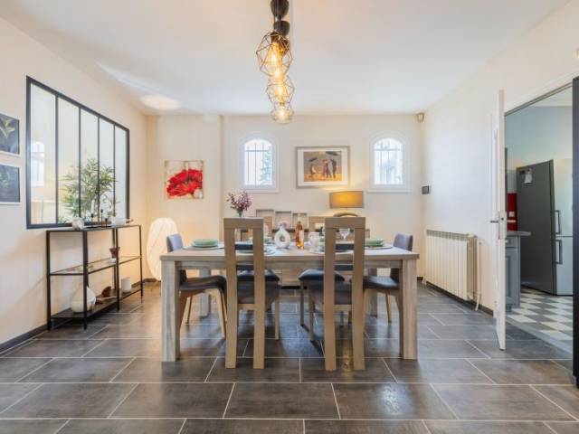Casa 4 estancias 120 m2. Espacioso, con mobiliario bonito y agradable: salón-comedor con chimenea (sólo con función decorativa), TV (pantalla plana). Salida al jardín, a la terraza. 1 dorm. con 1 cama de matrimonio (1 x 140 cm, 190 cm de longitud). 1 dorm. con 1 cama doble (2 x 80 cm, 200 cm de longitud), ducha/WC. 1 dorm. con 1 cama de matrimonio (1 x 140 cm, 190 cm de longitud), ducha/WC. Salida al jardín, a la terraza. Cocina (horno, 4 Placas de inducción, tostadora, hervidor de agua eléctrico, microondas, congelador, cafetera eléctrica). Salida al jardín, a la terraza. WC separado. Calefacción de gas. Terraza grande. Muebles de terraza, barbacoa. El alojamiento dispone de: lavadora, secadora, plancha. Internet (Wifi, gratis). Plaza de aparcamiento (3 Coches). A tener en cuenta: un dormitorio doble está fuera del apartamento. Detector de humo. Oferta de un particular según el art. 155, IV del CGI.