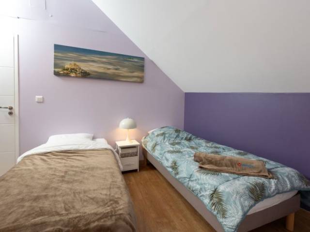 Casa de dos viviendas bonita, confortable. 2 apartamentos en la propiedad. En el centro de Mont Dol, en un barrio residencial, excelente situación: muy céntrica pero tranquila, a 6.5 km del mar, a 6.5 km de la playa. Privado: jardín pequeño, cuidado (no está vallado), Aparcamiento junto a la casa. Tienda 3.5 km, supermercado 3.3 km, centro comercial 4.5 km, restaurante 50 m, panadería 300 m, parada autobús "Centre Dol de Bretagne" 3.2 km, estación de tren "Gare Dol de Bretagne" 4.1 km, terminal marítima "Gare maritime du Naye" 23.1 km, playa de arena "de Cherrueix" 6.5 km, piscina termal "Thermes marin de Saint Malo" 26 km. Pista de tenis cubierta 3.4 km, centro ecuestre 11.5 km. Atracciones en los alrededores: grand aquarium de St Malo 25.5 km, Cancale 21 km, Mont St Michel 28.8 km, Dinard 33 km, Dol de Bretagne 3.5 km, Dinan 32 km. A tener en cuenta: la entrega de llaves se realiza por la agencia Interhome en Saint Malo, 26 km. El propietario vive en una parte independiente de la casa. Se pueden reservar alojamientos adicionales. La propiedad con ref: Fr2721.300.2 está situada en la misma parcela. "L'atelier", apartamento de 3 estancias 68 m2 en 2 plantas. Con mobiliario confortable y de buen gusto: salón-comedor grande con 1 sofá-cama (120 cm, 190 cm de longitud), TV (pantalla plana). Salida a la terraza. 1 dorm. con 2 camas (90 cm, 190 cm de longitud). Cocina abierta (horno, lavavajillas, 4 Placas de inducción, tostadora, hervidor de agua eléctrico, microondas, congelador, cafetera eléctrica). Salida a la terraza. Ducha/WC. Calefacción eléctrica. Calefacción disponible desde el 15.10. al 15.04. Planta superior: 1 dorm. con 1 cama de matrimonio (1 x 160 cm, 200 cm de longitud). Terraza 25 m2. Muebles de terraza, barbacoa. El alojamiento dispone de: lavadora, plancha, secador de pelo. Internet (Wifi, gratis). Plaza de aparcamiento junto a la casa. A tener en cuenta: adecuado para familias. Apartamento para no fumadores. Detector de humo. Oferta de un particular según el art. 155, IV del CGI.
