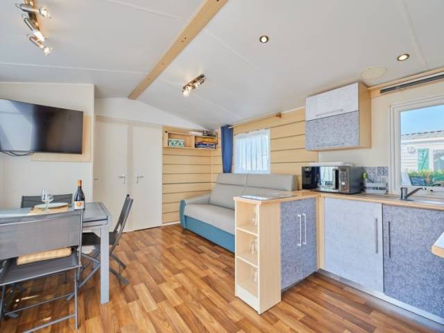 "Super octalia", 4 estancias mobile home 32 m2. Con mobiliario bonito: salón-comedor con TV (pantalla plana). 1 dorm. con 1 cama de matrimonio (140 cm, 190 cm de longitud). 1 dorm. con 1 x 2 literas (80 cm, 190 cm de longitud). 1 dorm. con 1 cama abatible (80 cm, 190 cm de longitud) con WC separado. Cocina abierta (4 fuegos, tostadora, hervidor de agua eléctrico, microondas, cafetera eléctrica). Ducha. Terraza 20 m2. Muebles de terraza, barbacoa eléctrica. El alojamiento dispone de: lavadora, secadora. Internet (Wifi, gratis). A tener en cuenta: permitido máximo 1 mascota / perro. Detector de humo. Oferta de un particular según el art. 155, IV del CGI.