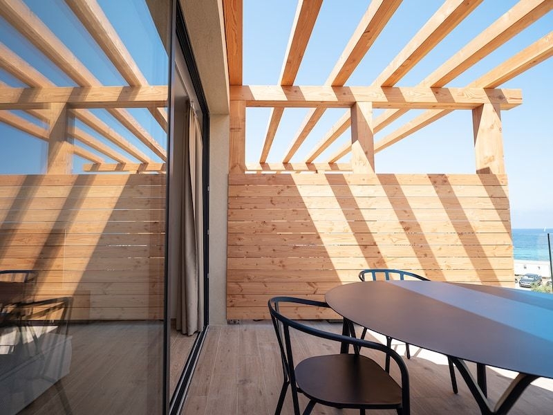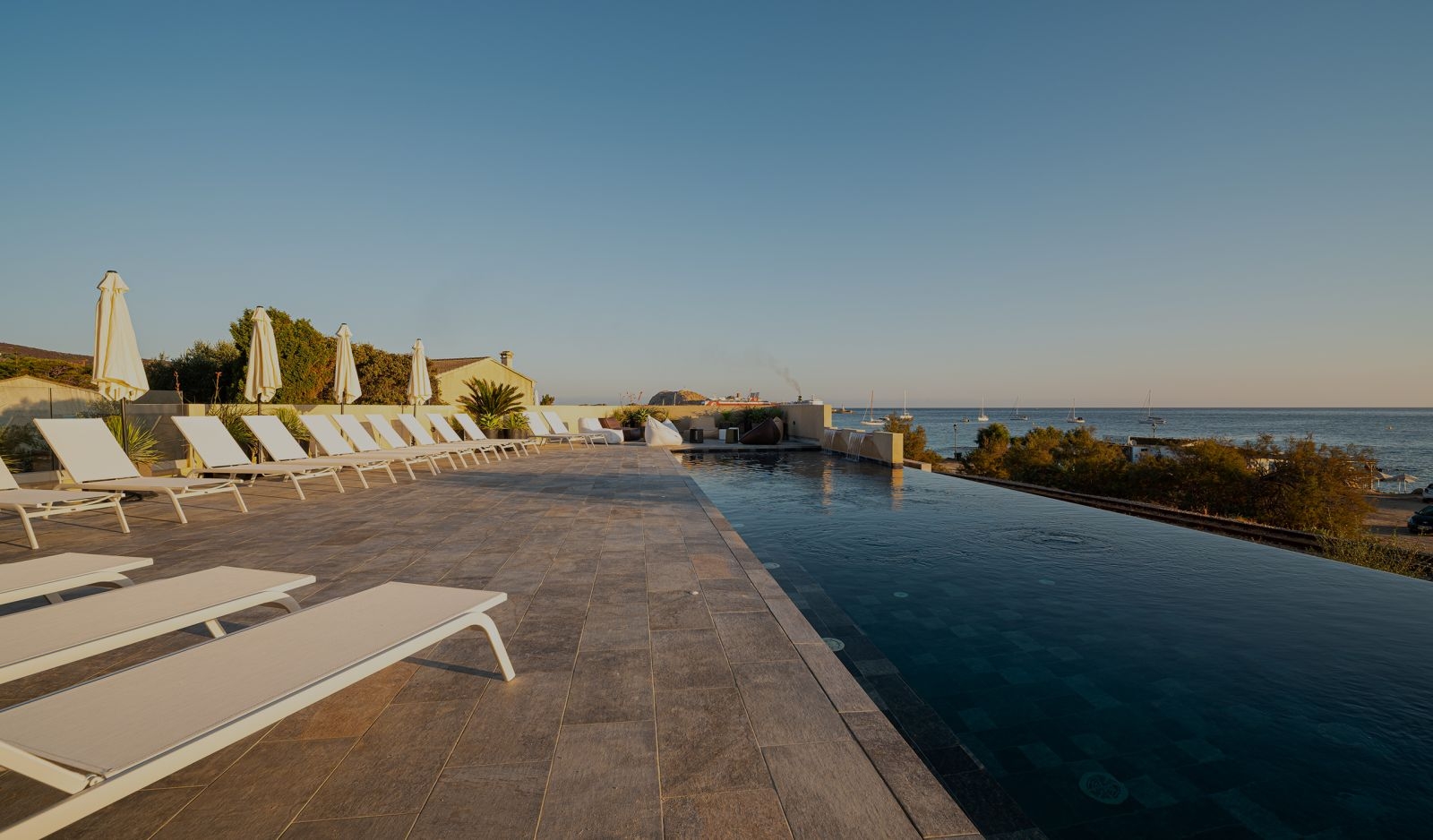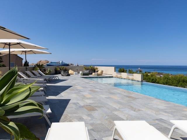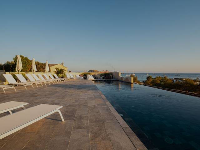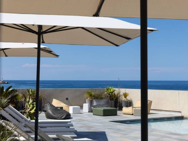 Piscina infinita Apartamentos climatizados y decorados con gusto Varios servicios disponibles: desayuno, entrega de panadería, lavandería o aparcamiento privado.