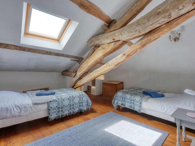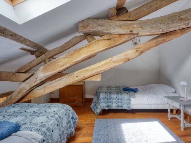 Casa 5 estancias 130 m2. Espacioso y luminoso, con mobiliario confortable y bonito: sala de estar grande con chiminea nórdica y TV (pantalla plana). 1 dorm., grande con 1 cama de matrimonio (180 cm, 190 cm de longitud), chiminea nórdica y baño/ducha/WC. Cocina (horno, 4 placas de vitrocerámica, tostadora, hervidor de agua eléctrico, microondas, congelador, cafetera eléctrica) con mesa de comedor. Salida al jardín. Planta superior: 1 dorm., abuhardillado con 1 cama de matrimonio (140 cm, 190 cm de longitud). 1 dorm., abuhardillado con 2 camas (90 cm, 190 cm de longitud). Ducha/WC. Calefacción eléctrica, calefacción de leña. Terraza 12 m2, cubierta. Muebles de terraza, barbacoa eléctrica, tumbonas (4). El alojamiento dispone de: lavadora, secadora, plancha, trona, cuna, secador de pelo. Internet (Wifi, gratis). A tener en cuenta: adecuado para familias. Casa para no fumadores. Detector de humo. Oferta de un particular según el art. 155, IV del CGI.