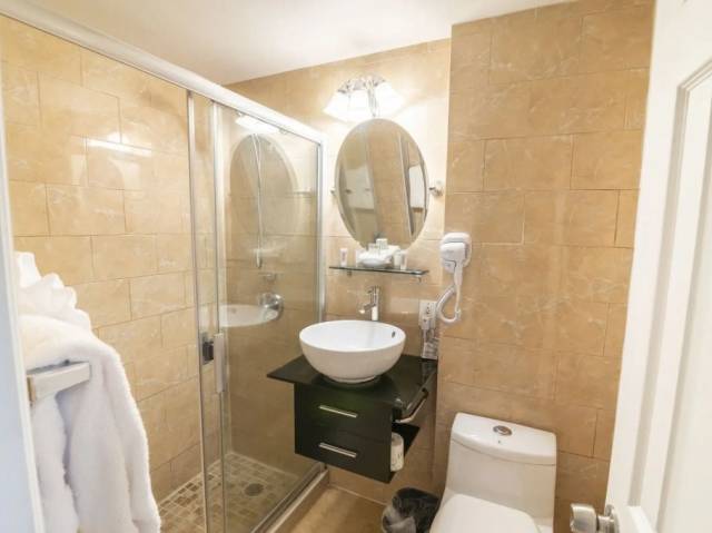 Esto es lo que encontrarás en la habitación para descansar después de un día largo: una ducha, una TV, batas y pantuflas. Ten en cuenta que no todas las habitaciones incluyen todos los servicios mencionados.