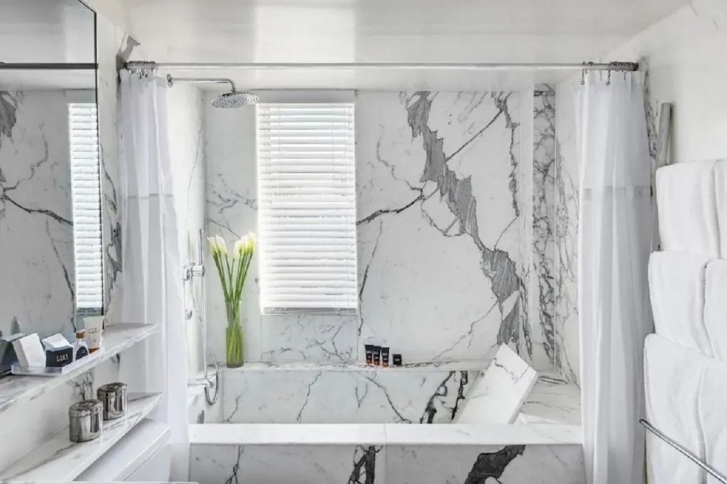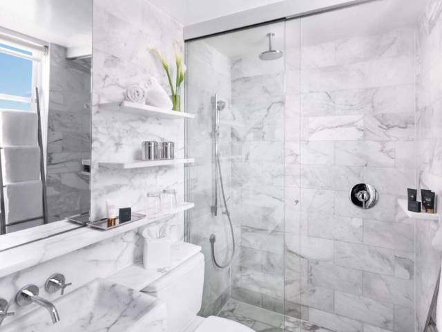 Esto es lo que encontrarás en la habitación para descansar después de un día largo: una ducha. Ten en cuenta que no todas las habitaciones incluyen todos los servicios mencionados.