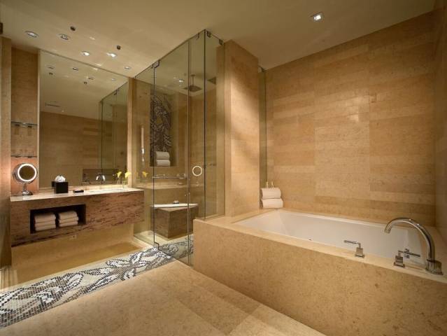 Esto es lo que encontrarás en la habitación para descansar después de un día largo: un reloj alarma, una ducha, una TV, un minibar, batas y pantuflas. El equipamiento de la habitación depende de su categoría.
