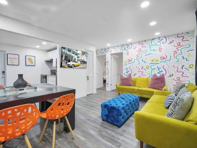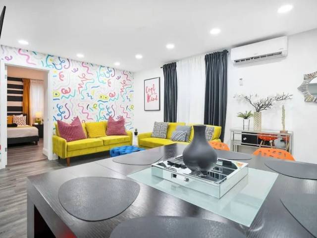Miami, Estados UnidosSi quieres sentirte como en casa sin importar dónde estés, alójate en apartamento «Good Vibes Retreat Decor BBQ Patio heart Wynwood» se encuentra en Miami. Este apartamento se encuentra a 4 km del centro de la ciudad. Puedes recorrer a pie el área residencial de el apartamento: Rubell Family Art Collection, Tienda Wynwood Walls y PanAmerican Art Projects.