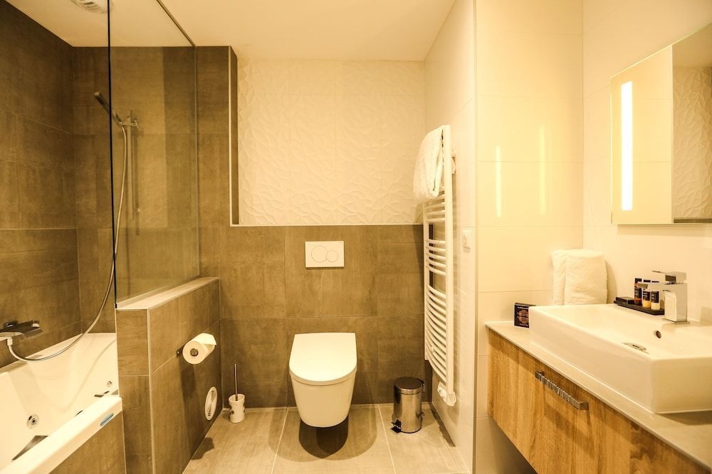 Los huéspedes encontrarán lo siguiente en la habitación: una ducha, una TV, un minibar y batas. El equipamiento de la habitación depende de su categoría.