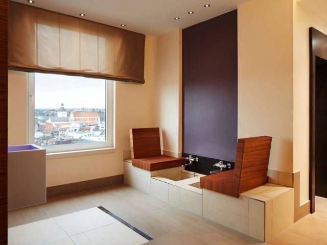 Esto es lo que encontrarás en la habitación para descansar después de un día largo: una TV, un minibar y batas. El equipamiento de la habitación depende de su categoría.