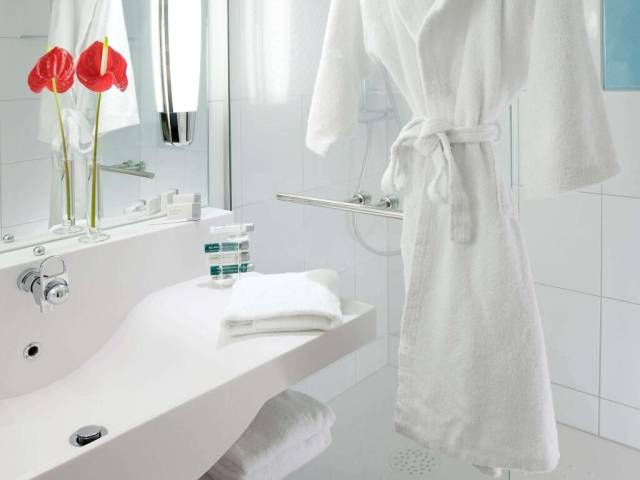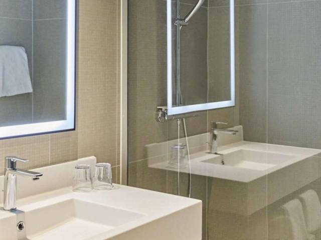 Esto es lo que encontrarás en la habitación para descansar después de un día largo: una ducha, un minibar y batas. Ten en cuenta que no todas las habitaciones incluyen todos los servicios mencionados.