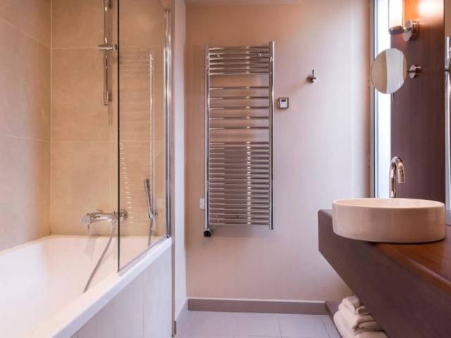 La habitación está decorada con calidez y cuenta con todo lo que necesitas para descansar después de un día largo y agitado. Incluye un reloj alarma, una ducha, una TV y un minibar. Ten en cuenta que no todas las habitaciones incluyen todos los servicios mencionados.