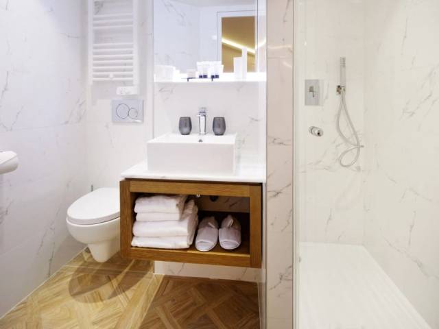 Esto es lo que encontrarás en la habitación para descansar después de un día largo: una TV y un minibar. Ten en cuenta que no todas las habitaciones incluyen todos los servicios mencionados.