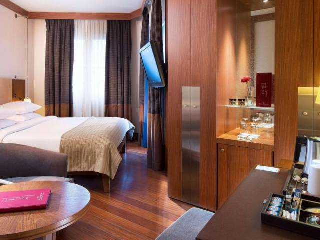 La habitación incluye una TV, un minibar, batas y pantuflas. El equipamiento de la habitación depende de su categoría.