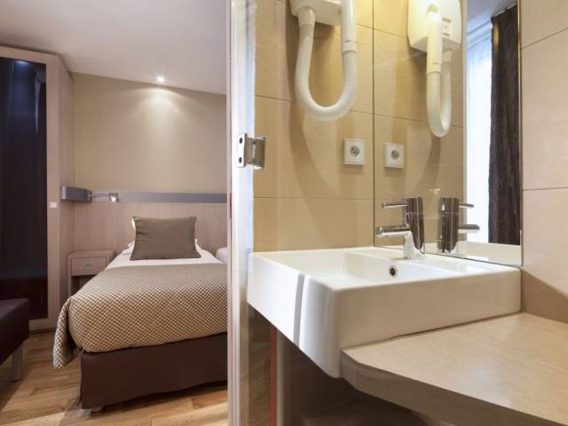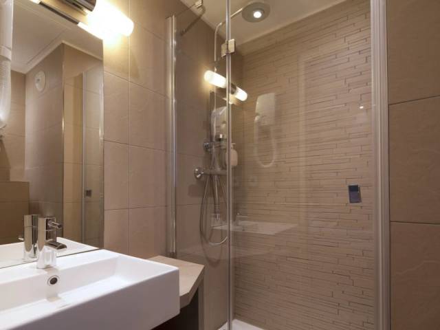 Esto es lo que encontrarás en la habitación para descansar después de un día largo: una ducha, una TV, un minibar y pantuflas. El equipamiento de la habitación depende de su categoría.