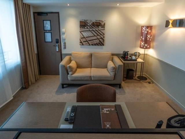 La habitación está decorada con calidez y cuenta con todo lo que necesitas para descansar después de un día largo y agitado. Incluye una ducha, una TV, un minibar, batas y pantuflas. Ten en cuenta que no todas las habitaciones incluyen todos los servicios mencionados.