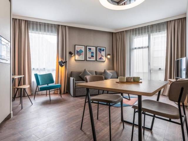 Si viajas en auto, puedes aprovechar el estacionamiento de pago en el apartotel. Los huéspedes que amen los deportes podrán disfrutar un centro deportivo y una sala de ejercicios. No te aburrirás nunca en el apartotel porque encontrarás una biblioteca. Para quienes participen de reuniones de negocios, el alojamiento ofrece un salón de conferencias.