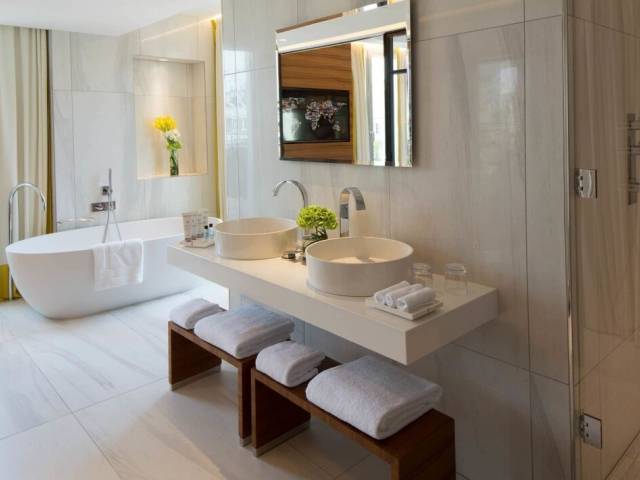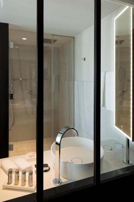 La habitación está decorada con calidez y cuenta con todo lo que necesitas para descansar después de un día largo y agitado. Incluye una ducha, una TV, un minibar, batas y pantuflas. Ten en cuenta que no todas las habitaciones incluyen todos los servicios mencionados.