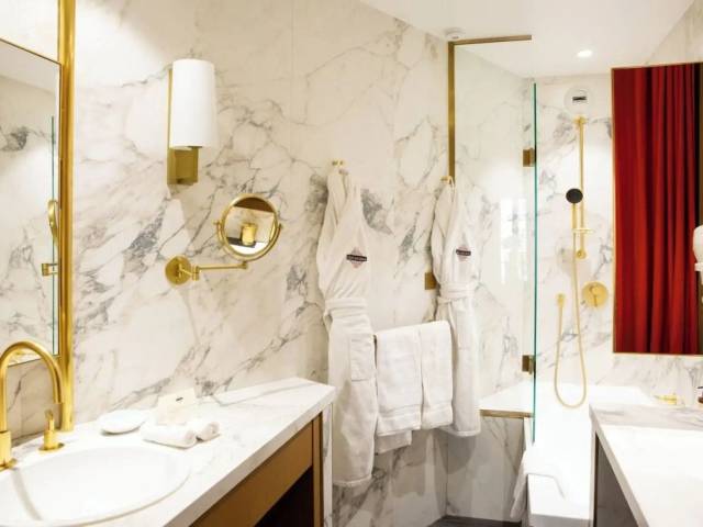 La habitación está decorada con calidez y cuenta con todo lo que necesitas para descansar después de un día largo y agitado. Incluye una TV, un minibar y batas. El equipamiento de la habitación depende de su categoría.