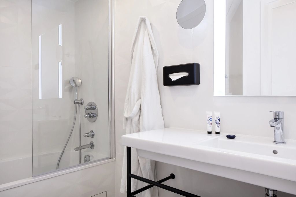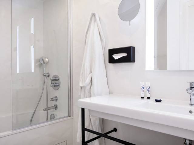 En la habitación, encontrarás una ducha, una TV, un minibar, batas y pantuflas. Ten en cuenta que no todas las habitaciones incluyen todos los servicios mencionados.