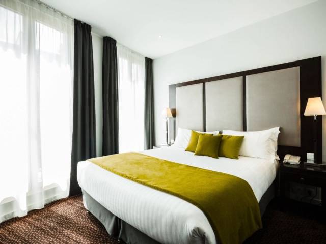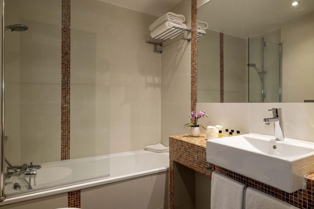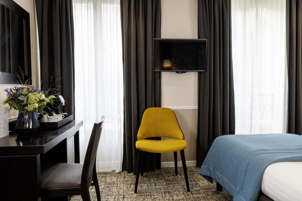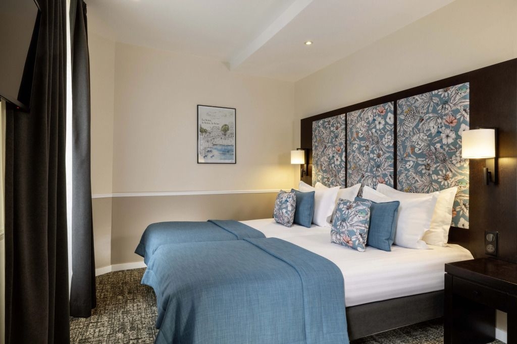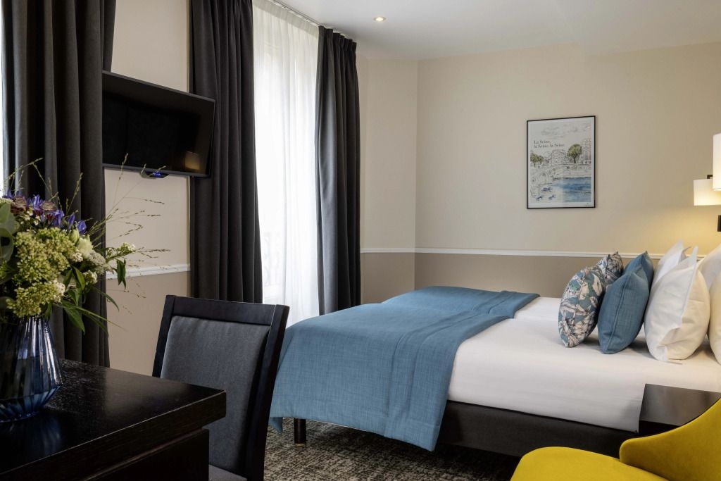 La habitación está decorada con calidez y cuenta con todo lo que necesitas para descansar después de un día largo y agitado. Incluye un reloj alarma, una ducha, una TV, un minibar, batas y pantuflas. El equipamiento de la habitación depende de su categoría.