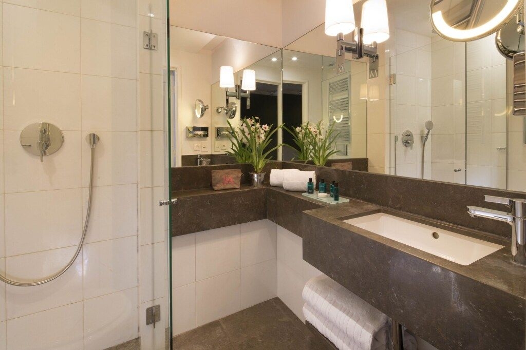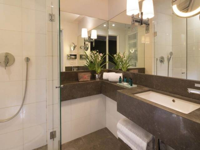 Esto es lo que encontrarás en la habitación para descansar después de un día largo: un reloj alarma, una ducha, una TV, un minibar, batas y pantuflas. El equipamiento de la habitación depende de su categoría.