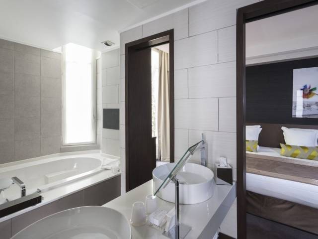 La habitación está decorada con calidez y cuenta con todo lo que necesitas para descansar después de un día largo y agitado. Incluye una ducha, una TV, un minibar, batas y pantuflas. Ten en cuenta que no todas las habitaciones incluyen todos los servicios mencionados.