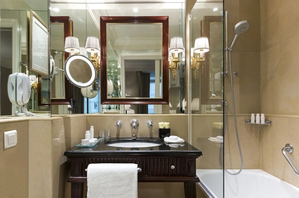 La habitación está decorada con calidez y cuenta con todo lo que necesitas para descansar después de un día largo y agitado. Incluye un reloj alarma, una ducha, una TV, un minibar, batas y pantuflas. El equipamiento de la habitación depende de su categoría.
