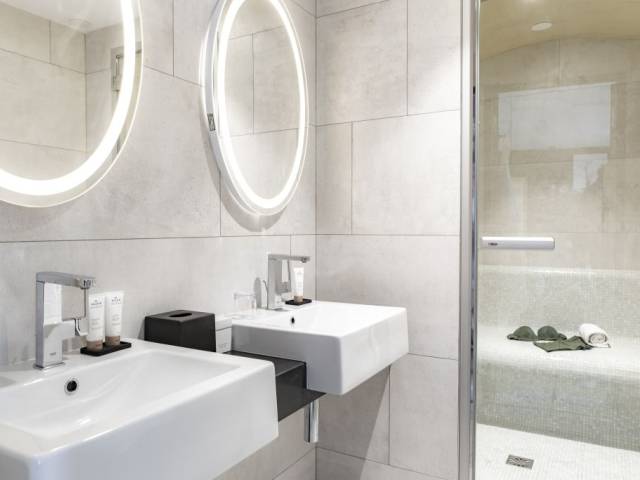 Esto es lo que encontrarás en la habitación para descansar después de un día largo: una ducha, una TV, un minibar y pantuflas. El equipamiento de la habitación depende de su categoría.