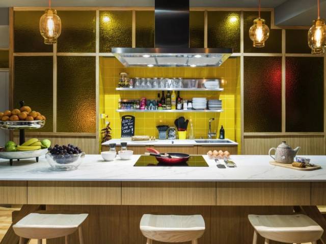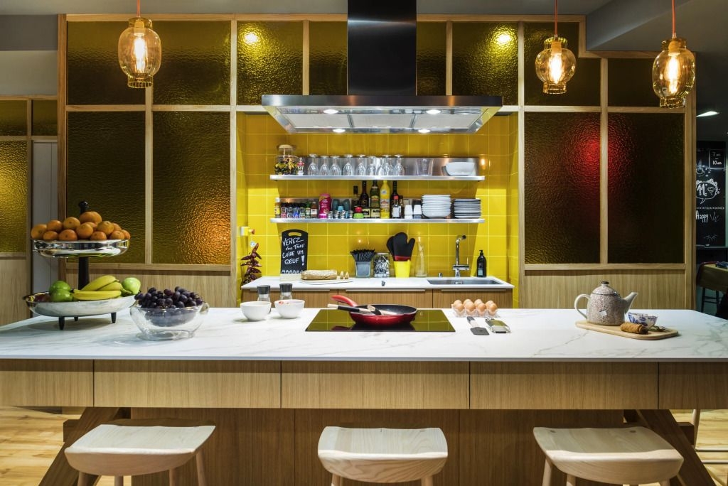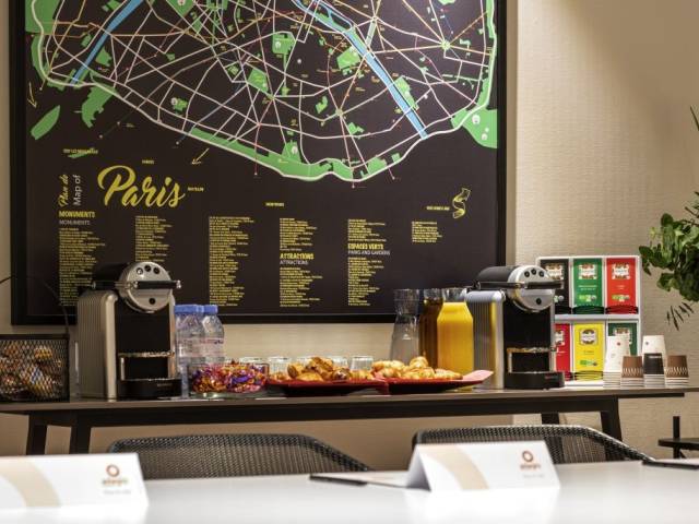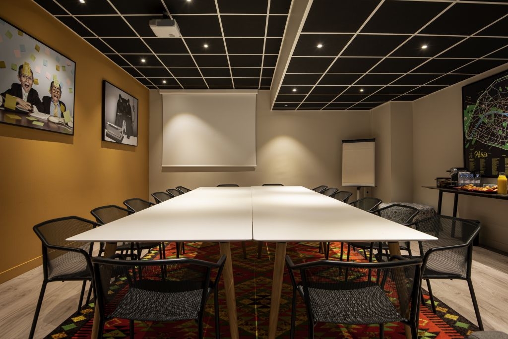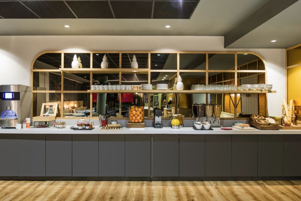 Es el momento de una comida sabrosa. Haz una pausa en el restaurante. En la cocina compartida, puedes preparar lo que quieras. ¿Quieres estar siempre conectado? Hay wifi disponible. No te aburrirás nunca en el apartotel porque encontrarás una biblioteca.