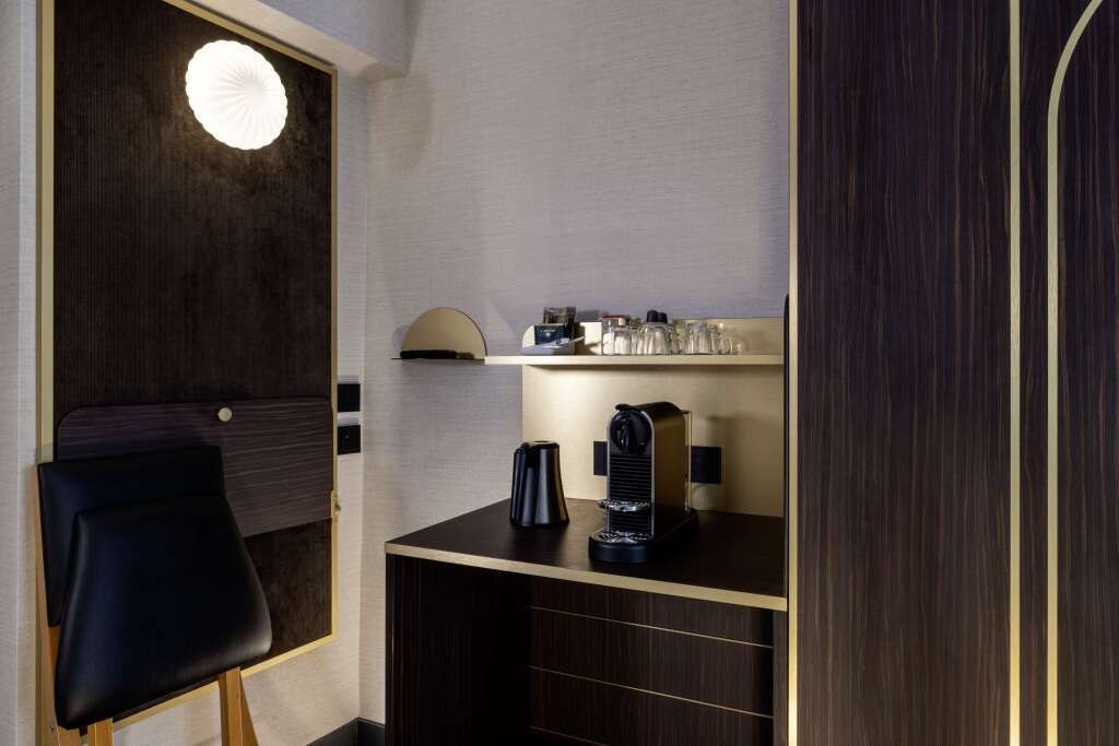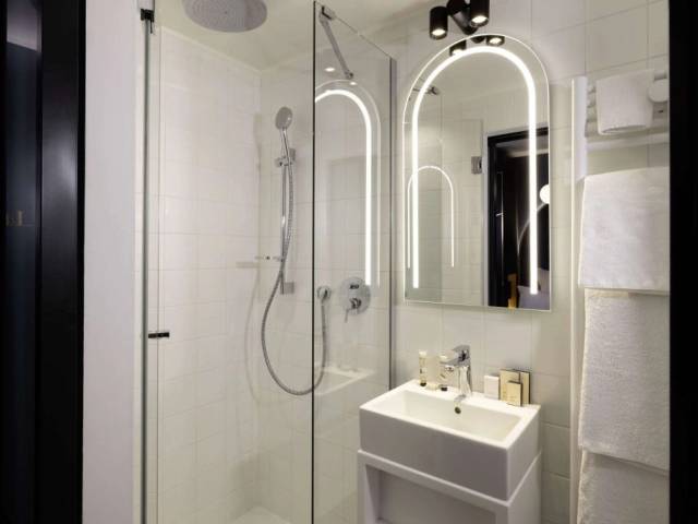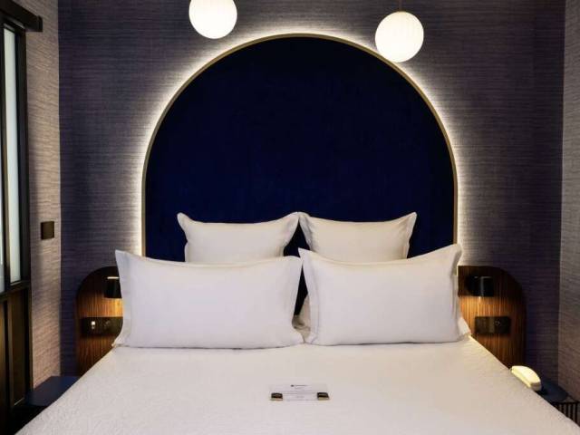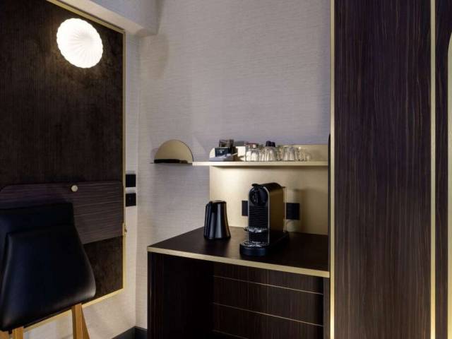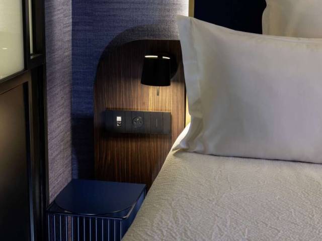 Esto es lo que encontrarás en la habitación para descansar después de un día largo: una TV, un minibar, batas y pantuflas. El equipamiento de la habitación depende de su categoría.