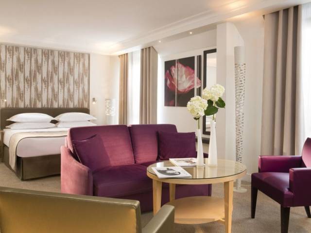 La habitación incluye un reproductor de DVD, una TV, un minibar y pantuflas. El equipamiento de la habitación depende de su categoría.