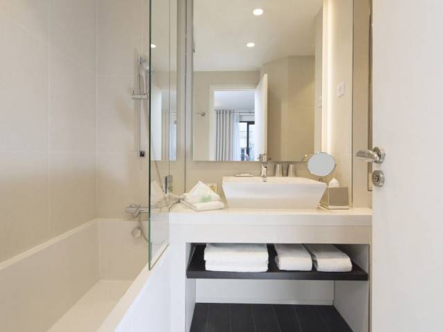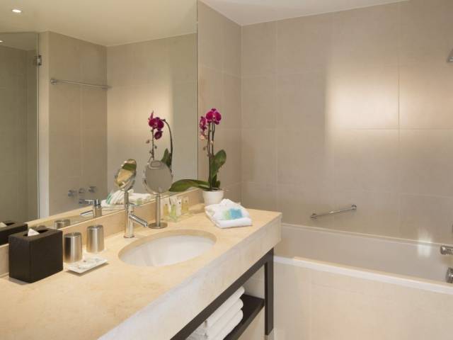 Aire acondicionadoRecepción 24 hAscensorCalefacciónCaja de SeguridadJardínTerrazaServicio habitacionesTVMinibarSecadoraBañeraRopa de camaLavanderíaCaja de SeguridadServicio de despertadorTeléfonoBarDesayunoRestauranteCafeteríaAgua embotelladaAparcamientoGimnasioGimnasio