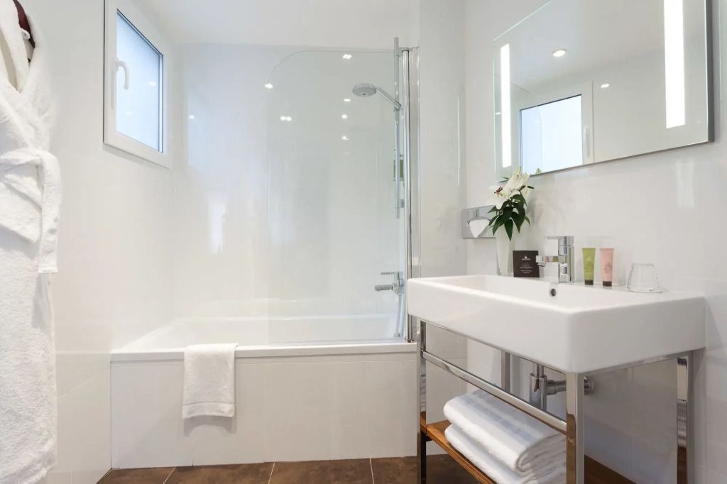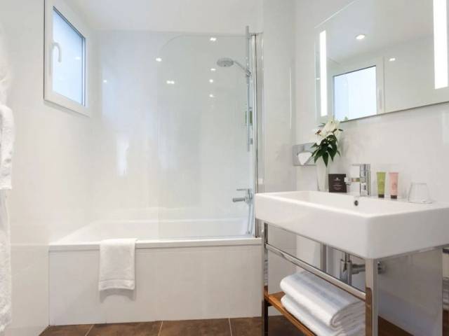 Esto es lo que encontrarás en la habitación para descansar después de un día largo: una ducha y un minibar. Ten en cuenta que no todas las habitaciones incluyen todos los servicios mencionados.