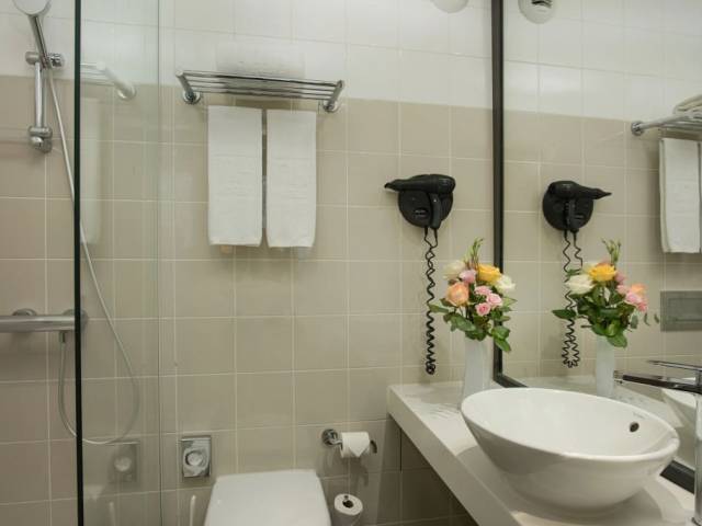 En la habitación, encontrarás una ducha, una TV, un minibar y batas. El equipamiento de la habitación depende de su categoría.