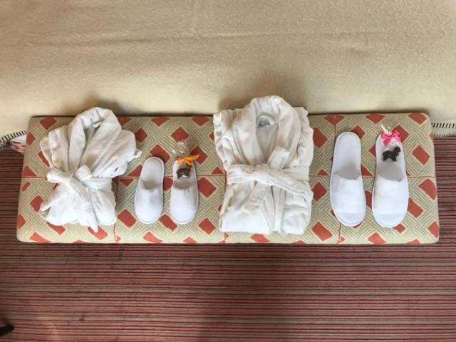 La habitación incluye una TV, un minibar y batas. El equipamiento de la habitación depende de su categoría.