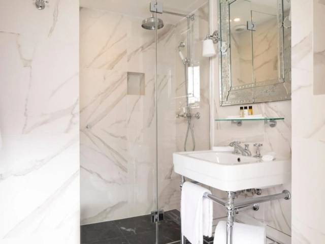 Esto es lo que encontrarás en la habitación para descansar después de un día largo: una ducha, una TV, un minibar, batas y pantuflas. El equipamiento de la habitación depende de su categoría.