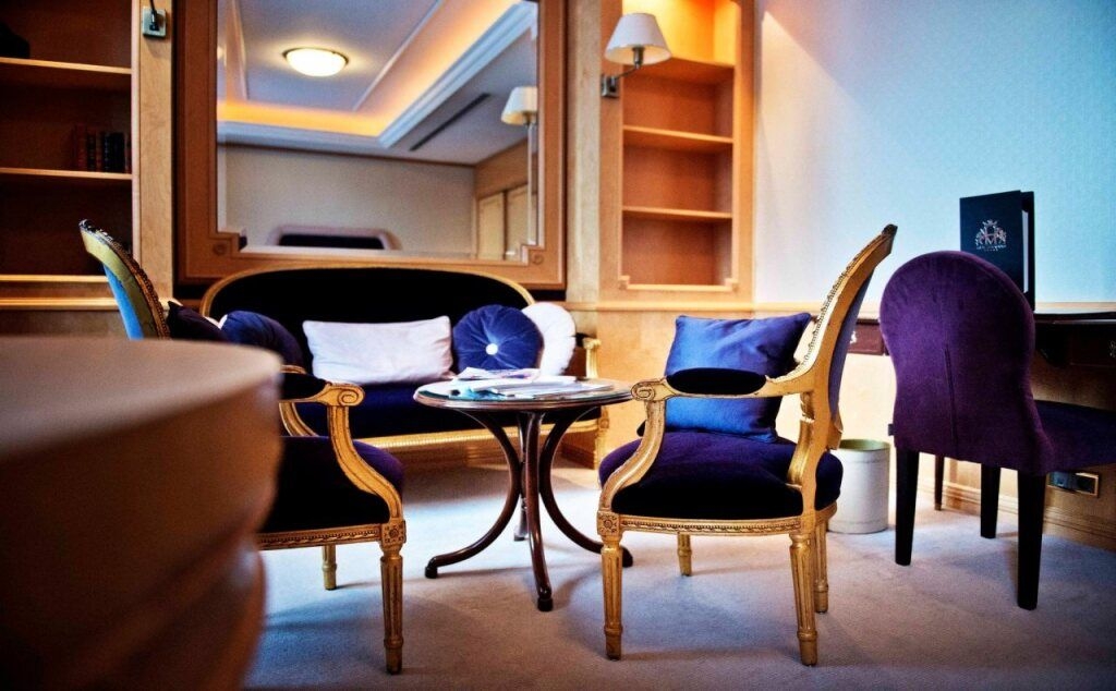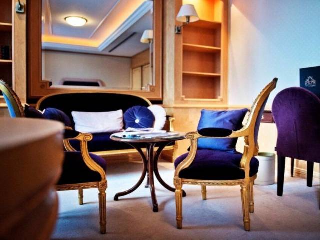 Esto es lo que encontrarás en la habitación para descansar después de un día largo: una TV, un minibar, batas y pantuflas. El equipamiento de la habitación depende de su categoría.