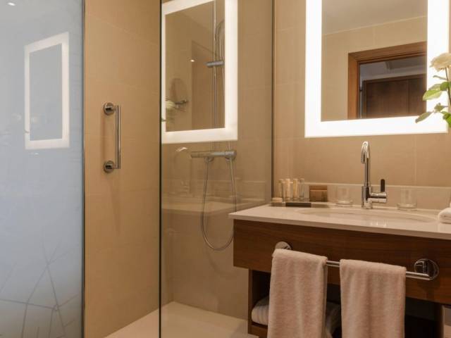 La habitación incluye una TV, un minibar, batas y pantuflas. El equipamiento de la habitación depende de su categoría.