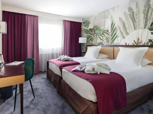 La habitación incluye una TV, un minibar, batas y pantuflas. El equipamiento de la habitación depende de su categoría.