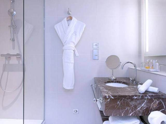 La habitación está decorada con calidez y cuenta con todo lo que necesitas para descansar después de un día largo y agitado. Incluye batas y pantuflas. Ten en cuenta que no todas las habitaciones incluyen todos los servicios mencionados.