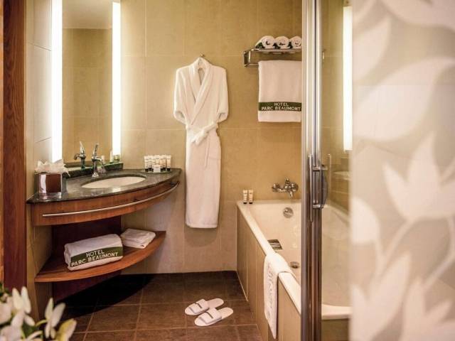 Esto es lo que encontrarás en la habitación para descansar después de un día largo: una ducha, una TV, un minibar, batas y pantuflas. El equipamiento de la habitación depende de su categoría.