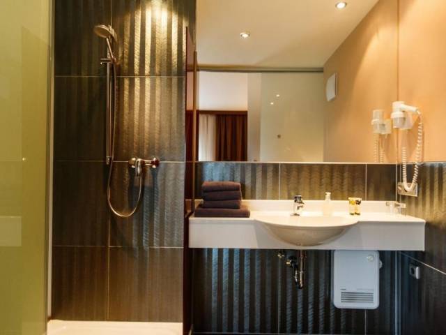 Esto es lo que encontrarás en la habitación para descansar después de un día largo: una ducha, una TV, un minibar y pantuflas. Ten en cuenta que no todas las habitaciones incluyen todos los servicios mencionados.