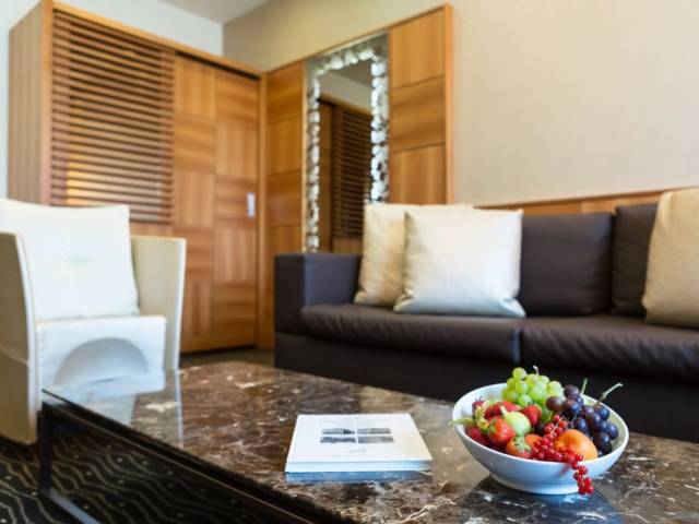 En la habitación, encontrarás una TV, un minibar, batas y pantuflas. Ten en cuenta que no todas las habitaciones incluyen todos los servicios mencionados.