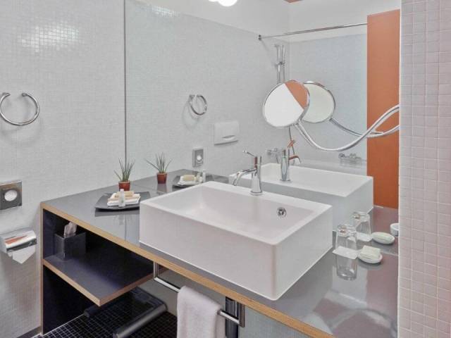Esto es lo que encontrarás en la habitación para descansar después de un día largo: una ducha, una TV, un minibar, batas y pantuflas. El equipamiento de la habitación depende de su categoría.